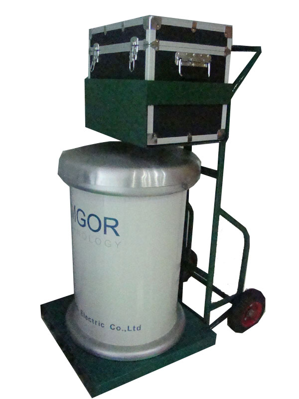 The YDST Series SF6 gas insulated AC hipot testers are an economical solution to AC field-testing of bucket trucks, aerial platforms, vacuum interrupters, breakers, switchgear, and other electrical apparatus. All models in the series are handcart mounted for portability and come complete with input line cord, interconnecting cable and ground leads.